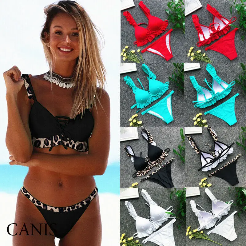 0 Response to " women ruffle underwire bikini set two piece swimsuit swimwear bathing suit swimming clothes"